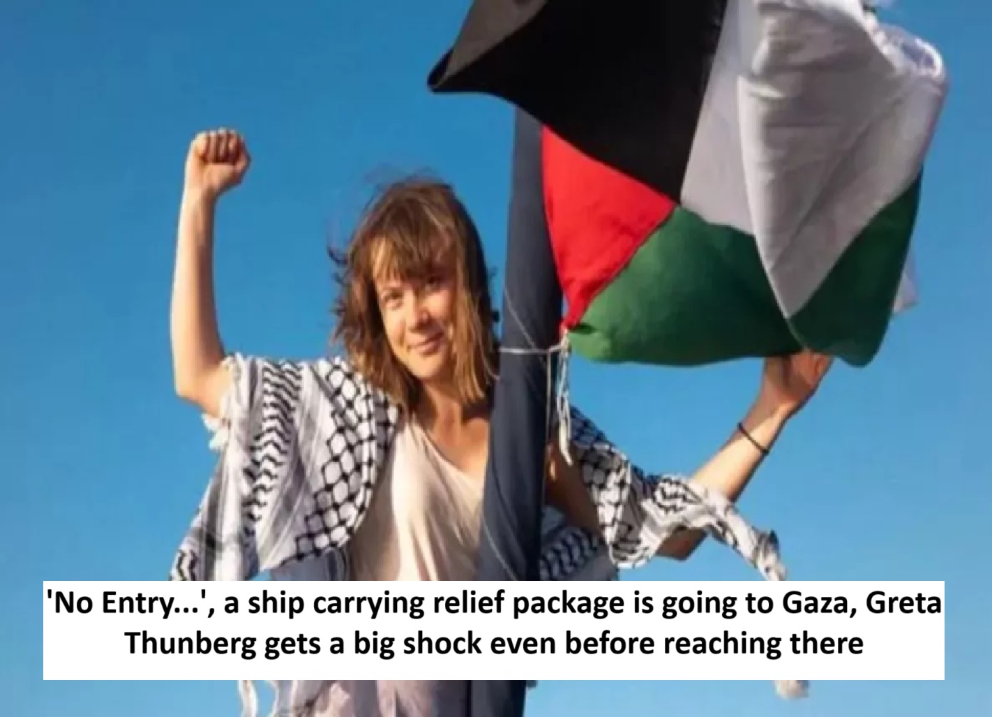 Photos of Greta Thunberg on board the ship with the Palestinian flag are becoming quite viral. Before boarding the ship, Thunberg had said that we should keep trying, because as soon as we stop trying, we lose humanity.